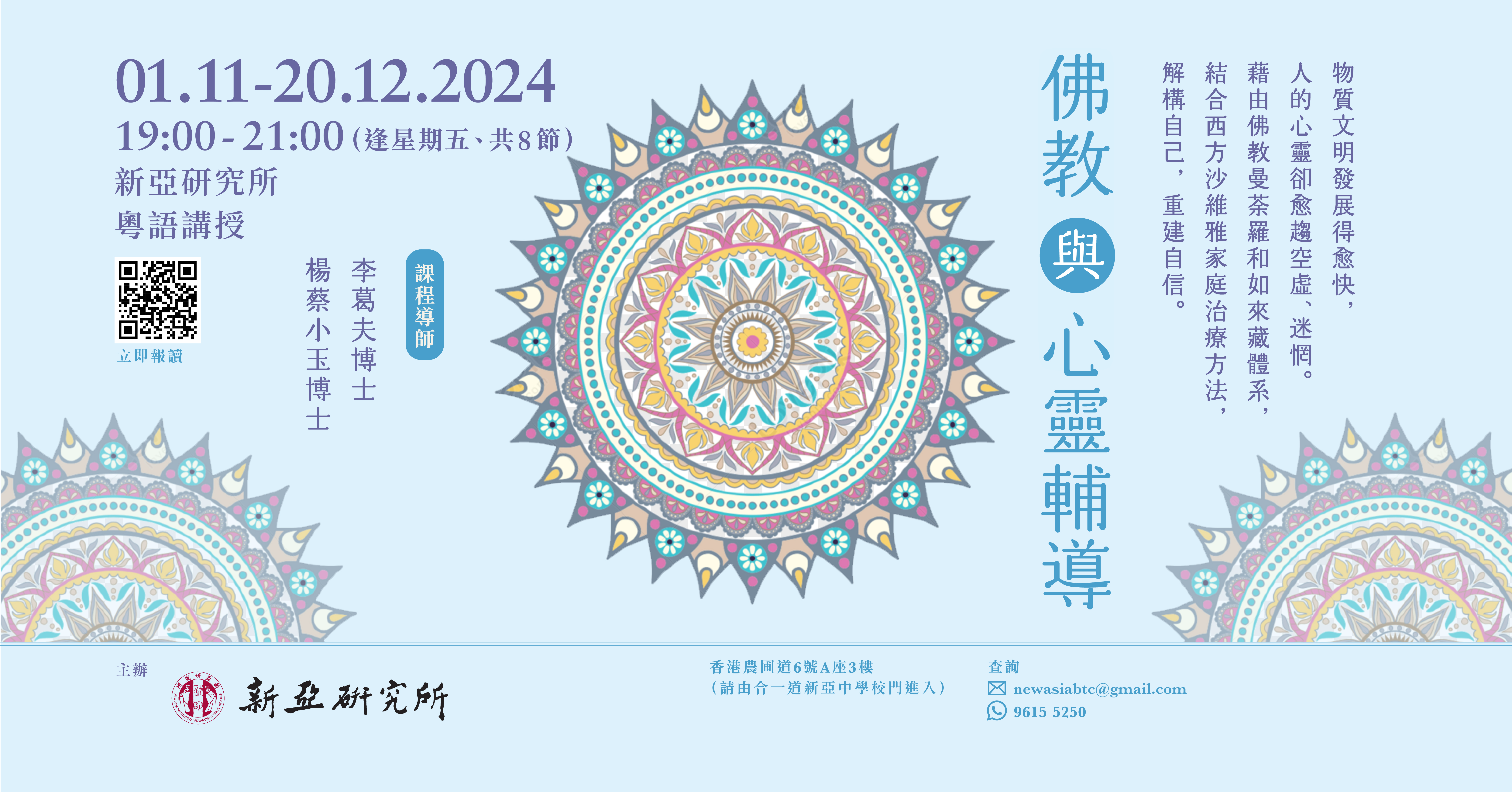 當今社會已進入元宇宙時代,物質文明發展得愈快,人的心靈卻愈趨空虛、迷惘,人際關係日見疏離,導致心理疾患如抑鬱、躁狂、低自尊等愈益普遍。人必須從宗教信仰、心理治療、生命教育等得到支持,才能渡過心靈上的難關。本課程藉佛教曼荼羅和如來藏體系,找尋自我生命境界的原形;結合西方沙維雅家庭治療方法,解構自己、他人的冰山,重新建立自信心,摒除心理上種種障礙,邁向「表裏一致」的和諧境界。